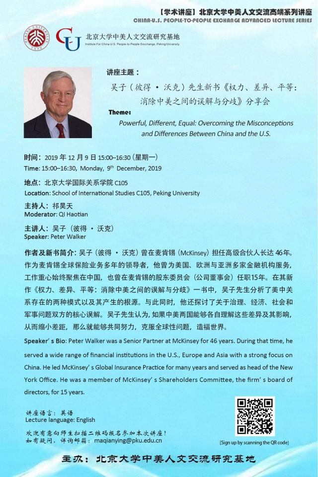 讲座:吴子(Peter Walker)先生新书《权力、差异、平等:消除中美之间的误解与分歧》分享会