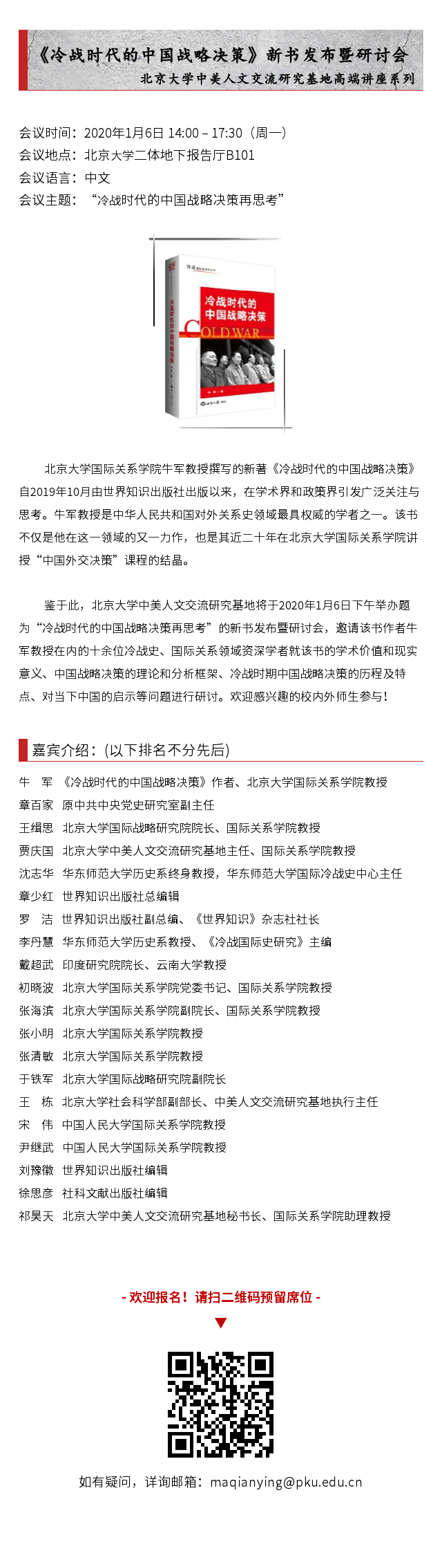 《冷战时代的中国战略决策》新书发布暨研讨会