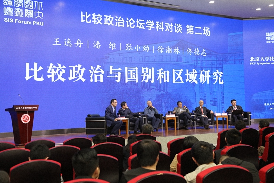 “比较政治学科对谈”第二场的主题为“比较政治与国别和区域研究”,由北京大学国际关系学院比较政治学专业主任汪卫华副教授主持,北京大学博雅特聘教授王逸舟、北京大学中国与世界研究中心主任潘维教授、清华大学社会科学学院政治学系主任张小劲教授、北京大学中国政府治理研究中心主任徐湘林教授、天津师范大学政治与行政学院院长佟德志教授参与对谈。