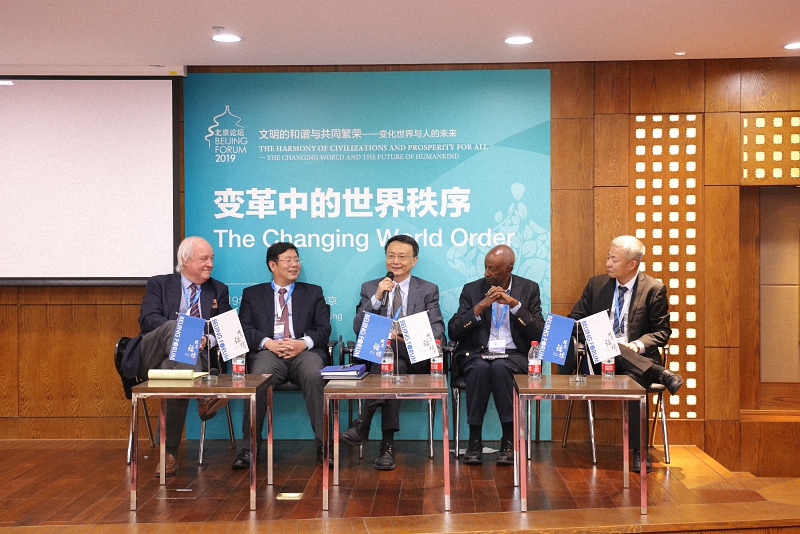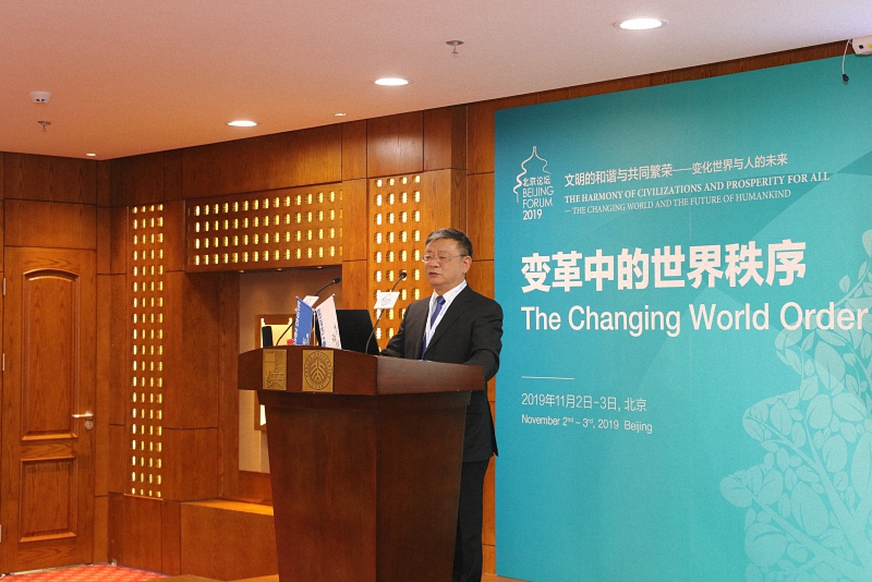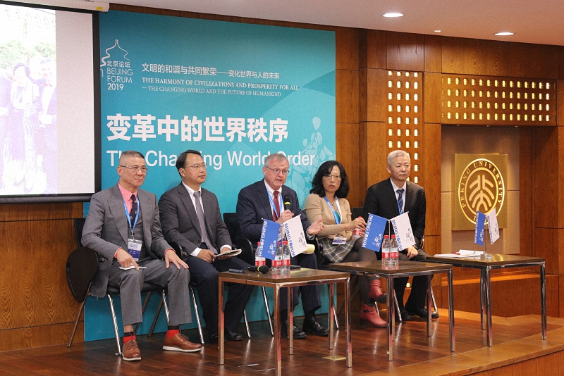 2019年11月2-3日,由北大国际关系学院承办的2019北京论坛国关分论坛—“变革中的世界秩序”在北京大学阿卜杜勒·阿齐兹国王公共图书馆北京大学分馆报告厅成功举行。来自中国北京大学、清华大学、复旦大学、南京大学、外交学院、中国海洋大学、太和智库,美国哈佛大学、波士顿大学、美利坚大学、伊利诺伊大学香槟分校,英国伦敦国王学院、切斯特大学,韩国高丽大学,俄罗斯国际事务理事会等海内外著名高校和智库的专家学者,围绕当前世界秩序及其发展趋势,聚焦经济全球化及其悖论、地区一体化及其困境、科技革命与国际秩序、美国霸权及其演变、中国方案及其影响等多个热点理论和现实问题进行深入交流研讨。世界知名学者、德国柏林自由大学历史系荣休教授、德国柏林社会科学中心前主席、本次北京论坛开幕式主旨报告人尤尔根·科卡也饶有兴趣地全程参加了讨论。