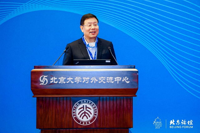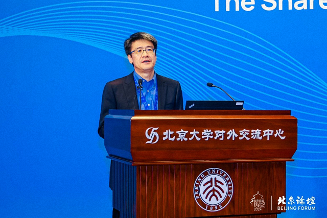 初晓波在致辞中指出,北京大学高度重视国际问题和人类命运共同体研究。面对百年未有之大变局以及当前复杂的国际政治经济形势,人类命运共同体的工具理性和价值理性并重尤为关键。同时,人类命运共同体研究本身也是中国学者探索自主学科体系的重要尝试,各国在追求本国利益时应该兼顾他国的合理关切。他回顾了命运共同体概念的缘起和发展,强调人类命运共同体是方略、理念、愿景、目标,世界各国尤其作为人类命运共同体理念的发起国中国来说,更需要思考“自律、自知、自省”的重要性。最后,他感谢北京论坛为促进国际学术交流和文明互鉴提供了宝贵的沟通对话平台。