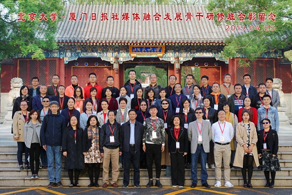 2019年4月25日,北京大学厦门日报社中层骨干媒体融合发展专题研修班在北京大学国际关系学院成功举办了开学典礼。北京大学国际关系学院副院长吴强,厦门市委宣传部副部长、厦门日报社党委书记、社长江曙曜,厦门日报社党委副书记郭红燕以及北京大学厦门日报社中层骨干媒体融合发展专题研修班全体学员出席了开班典礼。