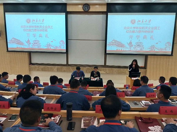 2019年4月22日,北京大学航天林泉电机企业员工综合能力提升研修班顺利开班。北京大学国际关系学院继续教育办公室副主任杨莉、航天林泉电机企业副总经理秦晔以及北京大学航天林泉电机企业员工综合能力提升研修班全体学员出席了开班仪式。