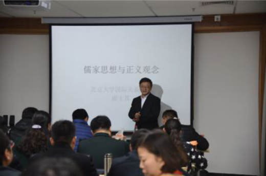 北京大学国际关系学院副院长唐士其教授讲授《儒家学说与正义观念》。