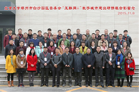2015年11月8日上午,北京大学国际关系学院成功举办了“北京大学郑州市白沙园区管委会‘互联网+’数字城市建设研修班”开学典礼。北京大学国际关系学院吴强副院长、郑州市白沙园区管委会副主任杜建强、北京大学国际关系学院继教办杨莉副主任、50名学员以及相关人员参加了此次开学典礼。