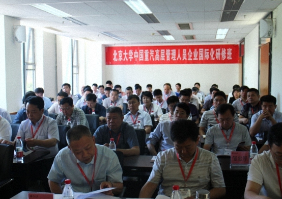 中国重汽董事长、党委书记马纯济在接下来的致辞中对贾院长、沈主席和北大国关院对筹办本次研修班给予的大力支持表示感谢,对中国重汽集团本次在北京大学国关院举办企业国际化研修班的重大意义进行了深入地阐述,并对学员们做好进一步的学习,加强联系实际,开拓管理视野,提高企业国际化水平提出了明确要求。 随后,中国重汽集团工会主席兼组织部部长陈珩对研修班的总体安排以及纪律要求向全体学员进行了传达和强调。
