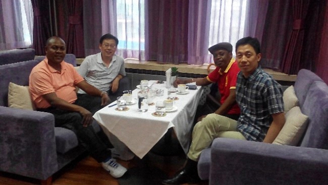 2014年迪昂吉拉(左一)回到北大国关看望同学