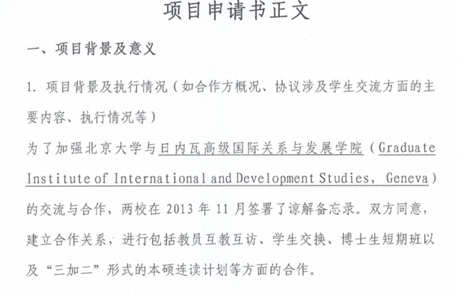 学院与日内瓦高研院的项目申请书