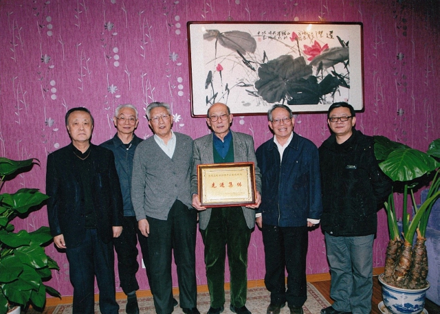 2012年6月,学院教学督导组获得北京高校离退休干部老有所为先进集体奖(左至右为李玉、刘金质、张映清、王炳元、黄宗良、时任副院长唐士其)