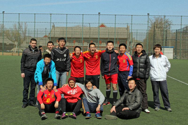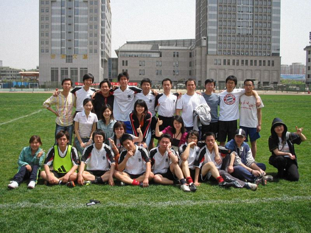 这拨球友一部分是在1998年进入北大,来到国关。那时,北大所有文科院系的大一新生都就读于昌平分校,共有700多人。由于环境相对封闭,在同一届校友当中,喜欢足球的男生们很快成为了情谊深厚的球友,时常一起驰骋在昌平的黄土球场上。大二回到燕园之后,这份友谊延续了下来。到了2004年,对于那些留校读研的一帮球友来说,我们已经在北大绿茵场上共同征战了六载光阴,而接下来就将面临硕士毕业季。于是,我们做出了决定,与有着诸多好友的政府管理学院组成联队,携手出征硕士杯,以此为我们的北大足球生涯留下最后的回忆。