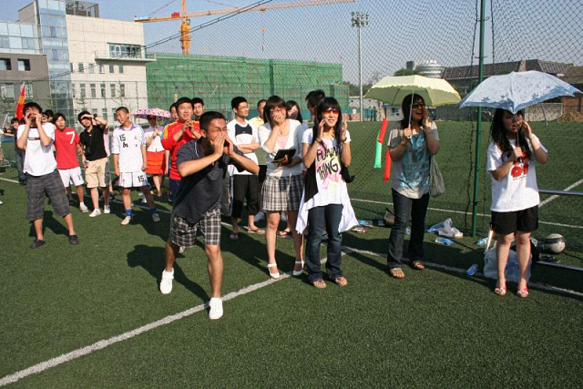 决赛哨响,政管攻,国关守。政管校队球员牢牢地控制着球权,国关则伺机组织反击快速突破,双方你来我往,进球如梅花间竹。比赛临近尾声,国关以3比2领先对手。时间一分一秒流逝,裁判已经频频看表,国关距离冠军只差最后的几分钟。可就在这时,意外发生了:最后时刻,面对政管的全力狂攻,国关球员在体能耗尽的情况下,不慎在禁区内手球!面对点球,政管球员稳稳罚进,比赛随后进入到残酷的点球大战。六轮过后,国关5:6遗憾败北。失败的结局是那么苦涩。那座北大杯冠军奖杯,那么近,又那么远。