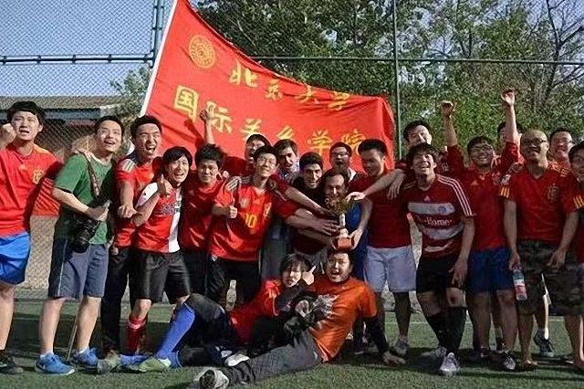 未名湖上水波荡漾,博雅塔下游人如织,他们并不知道在一墙之隔的那方小小球场之上,发生过多少跌宕起伏的故事。但国关男足的队员们和国关的“球迷”们从来不会忘记,在小小的直播屏幕另一端,有老学长们醉里挑灯看剑,梦回吹角连营:他们在北非纯粹的摩洛哥、在欧洲热闹的小酒馆、在泰国清净的佛寺里、在巴西明媚的海滩旁、在北美12个小时时差后、在韩国兵役小憩的间隙、在日本繁忙工作的午后,同时挤出了时间,一起关注着这一方小小的足球场。也许他们已经记不起曾经学习生活中的些许往事,但是每当他们看到队员们球衣上大大的“北大国关”四个字,依然会感到温润、亲切,依然会记起自己在国关男足的辉煌与遗憾。无论他们说着怎样的语言,在哨声响起的那一刻,他们还是会脱口而出一句地道的中文:“国关,加油!”