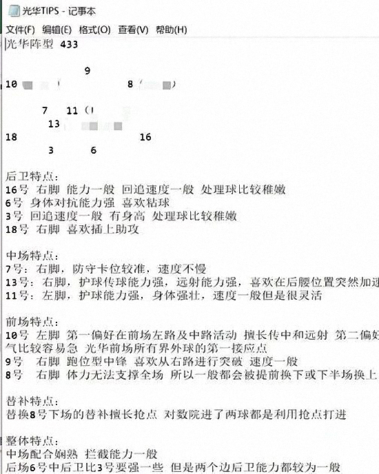 2013年北大杯决赛前球探战术图,13名球员同时观赛后汇总而成