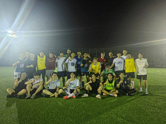 (硕士杯决赛点球失利后合影,前排左一:郑融、杨大言、陈先进、布依卡、李小萌、韩刚、陈向前;后排左一起:康涛、唐益、孔新峰、林俊、杨磊、肖楠,孟亚峥。很遗憾想不起来后排右二这位师弟的名字了。)