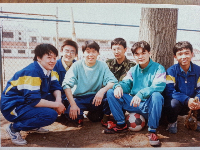 摄于1994年春,38楼212室的同学一起踢班内足球赛,左起:史哲、邹前、柳助波、叶海林、钟建军、安华国。