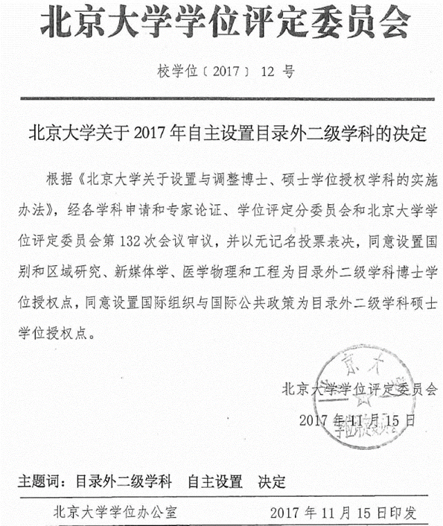 北大同意设置国际组织与国际公共政策硕士学位授权点的文件