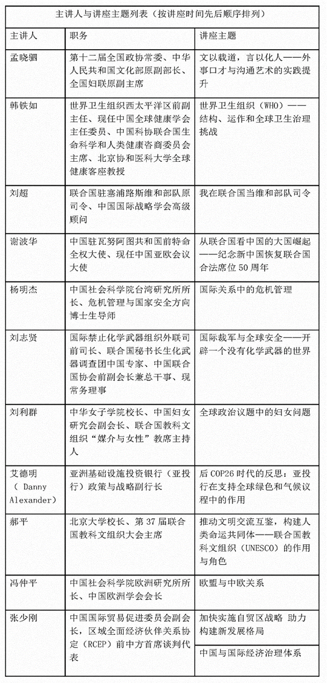 2021年国际组织与全球治理前沿名家系列讲座一览表
