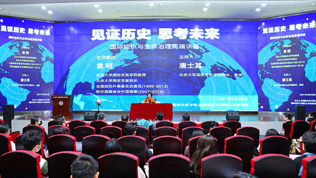2021年3月20日下午,时任北京大学燕京学堂院长袁明教授主讲国际组织与全球治理高端讲座——“见证历史,思考未来”。
