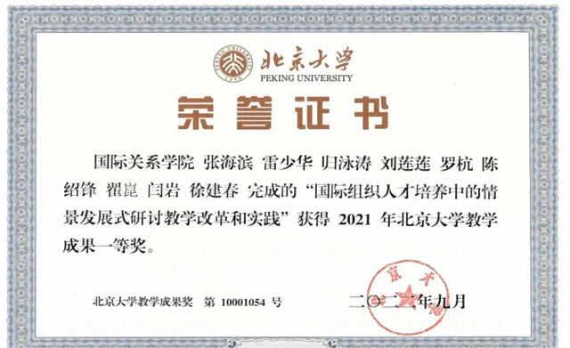 情景发展式研讨教学方法获评2021年北京大学教学成果一等奖。