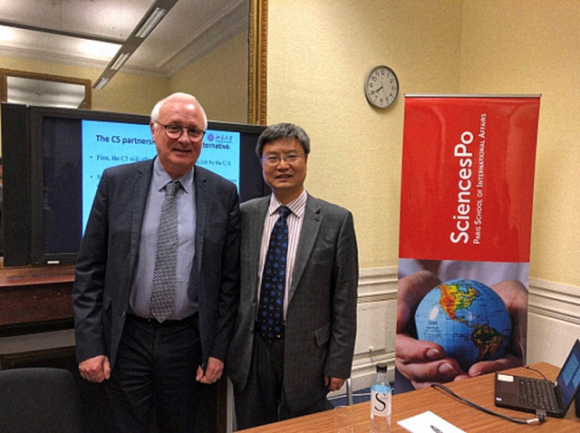 2019年3月26日,笔者在访问巴黎政治大学国际事务学院期间与该院副院长Mark Maloney教授(左2)交流国际组织人才培养路径与方法。