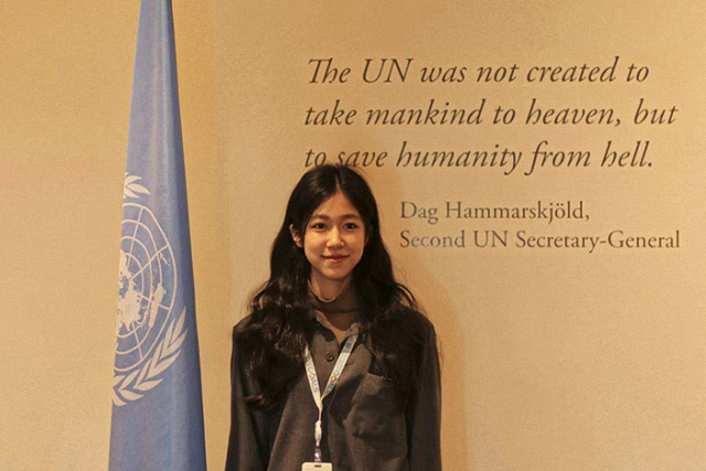 国际组织与国际公共政策专业2019级本科生刘思宇在联合国纽约总部的青年事务办公室的工作照。