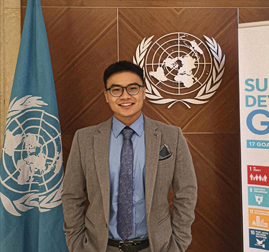 国际组织与国际公共政策专业2019级硕士研究生欧阳瑞泽在联合国日内瓦总部的总干事办公室的工作照。
