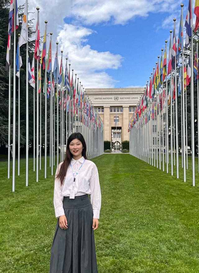 国际组织与国际公共政策专业2021级硕士研究生周真在联合国日内瓦总部环境署的工作照。