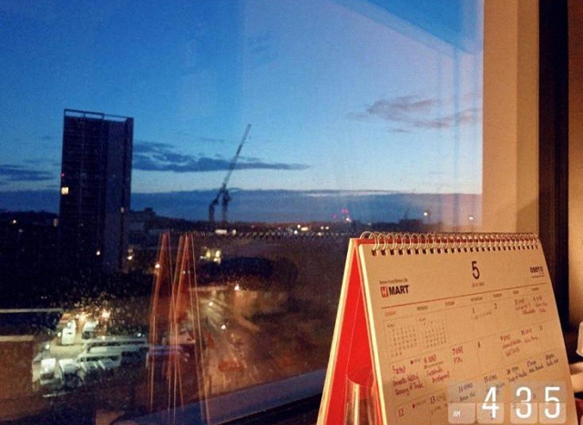 (破晓前的书桌与窗外的曙光,摄于伦敦住所)