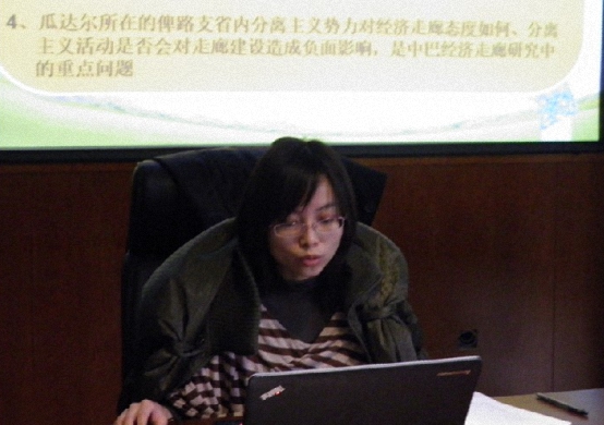 张元同学同样带来一段精彩的报告。她以巴基斯坦境内的俾路支分离主义为切入点,分析了对中巴经济走廊建设的影响,十分具有现实意义。报告概括了巴境内俾路支分离主义的历史与大小派别,分析了不同派别对中巴经济走廊的态度,认为中国政府应加强细节研究。两位博士后老师在肯定选题意义的同时,建议加强文章的理论性和“分离主义政治派别之间差异化态度”的原因分析。