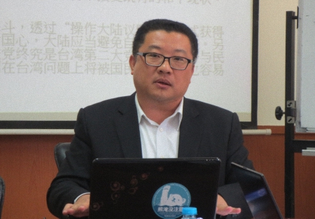 13级博士生钟镇宇同学做了大量的实地研究,不做文宣工具,本着学术研究的态度探讨了两岸关系的现况现实。他指出中华民国事实存在,两岸双方不宜片面改变现状,大陆要与台湾方面处理好关系,除了国民党与一些政商名流,还要考虑到陈老师认为他掌握了很多方面的数据,但是需要将样本最小化,以一叶知秋的态度做研究,从其中一个小问题着手来写论文。