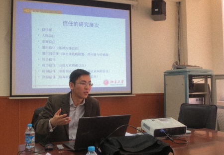 2014年3月28日下午,国际关系学院博士生论坛第42期在国际关系学院C105会议室举行。国际关系专业2012级博士生王正做了“国际关系信任理论的研究议程——兼谈南北塞浦路斯与两岸关系中的互信建构”主题报告。宋伟老师及多位博士生参加了学习和讨论。
