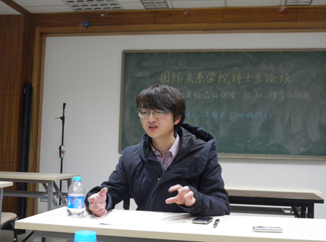 2012年12月14日下午,北京大学国际关系学院博士生论坛在国关楼地下活动室举行了本学期4次(总第25期)活动。