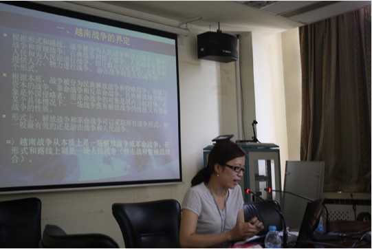 在本次活动中,北京大学国际关系学院国际关系专业2010级博士生、越南留学生黄松兰同学发表了题为“越南如何进行人民战争打败法美大国”的发言。黄松兰同学介绍了越南国内对于游击战、人民战争、革命等问题的看法和情况,认为越南人民的艰苦斗争、法美的错误战略决策和国内反战力量,导致越南最终在与法美大国的战争中取得了胜利。