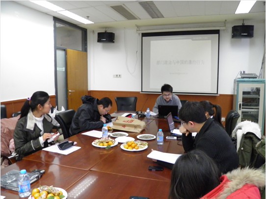 在论坛的上半部分,刘玮同学做了题为《部门政治与中国的遵约行为》的主题发言。刘玮首先提出了什么因素决定了中国的遵约行为这一问题,在对已有的关于遵约机制和中国遵约行为的研究文献回顾的基础上,提出部门偏好结构以及受其影响的国内履约机制决定了中国的遵约程度。刘玮通过中国对《烟草控制框架公约》和《蒙特利尔协定书》的履约行为进行比较案例研究,检验了文中提出的假说。在场的老师和博士生们就论文中国际制度的性质对遵约的影响、偏好结构的概念化和操作化、地方政府的作用、官僚政治模型的引入、中央高层的决定对遵约的影响等问题等进行了热烈而深入的讨论。