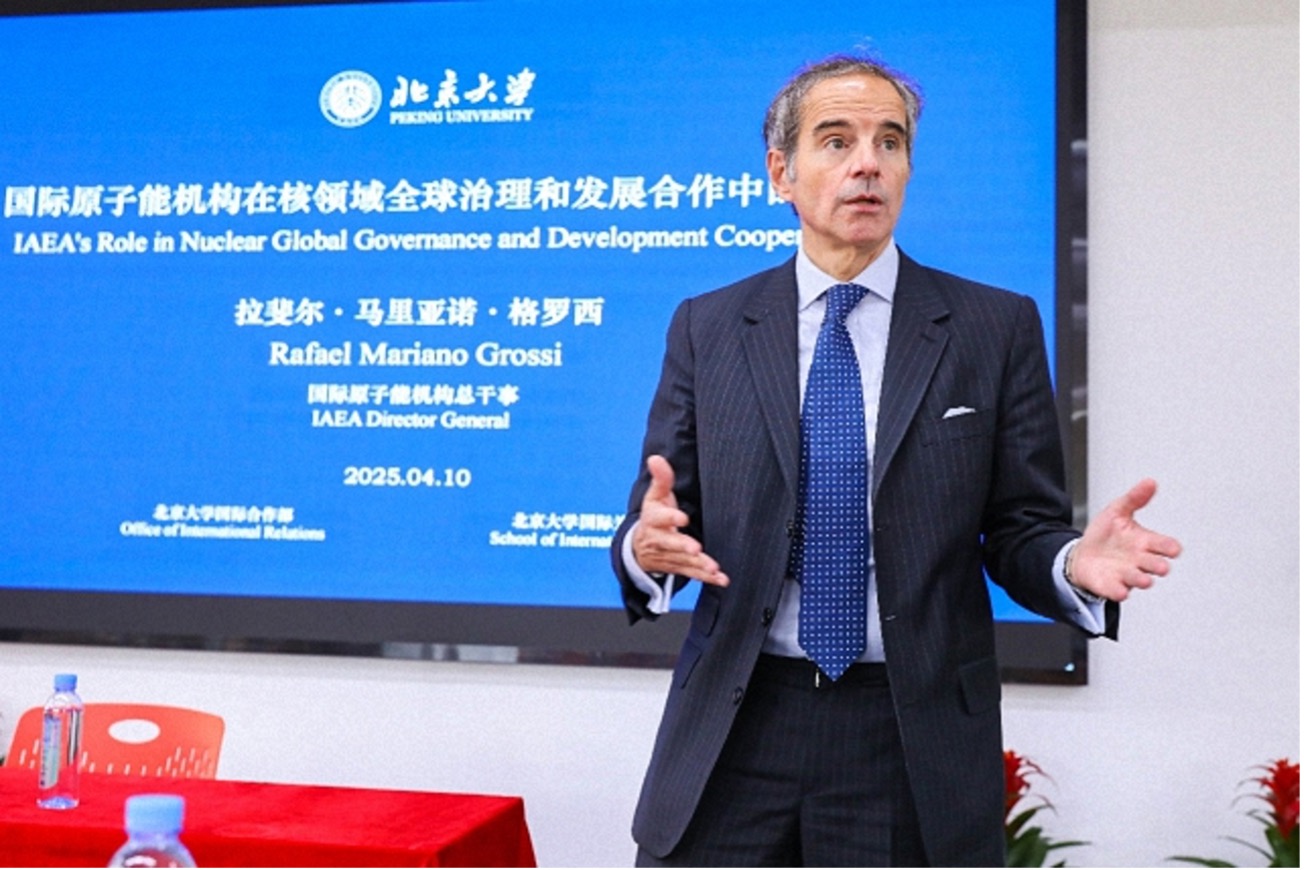 After the meeting, Director General Grossi delivered a lecture titled “The Role of the IAEA in Global Governance and Development Cooperation in the Nuclear Field” in Classroom C307. Vice Dean Zhang Haibin presided over the lecture. Tenured Associate Professors Chen Shaofeng and Luo Hang, along with over a hundred Chinese and international students from more than ten schools and departments of Peking University, attended the event.