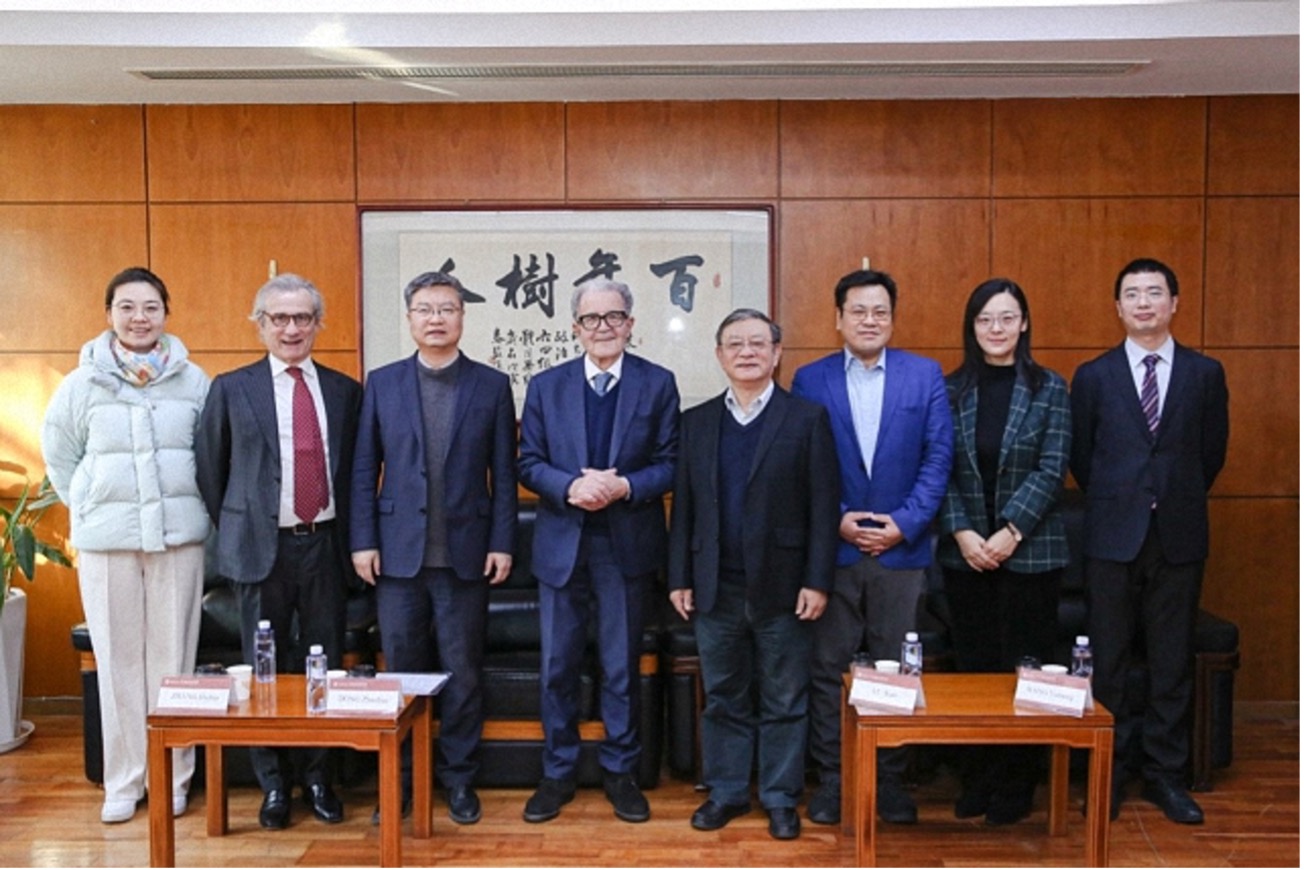 On February 26, 2025, Romano Prodi, former Prime Minister of Italy and former President of the European Commission, visited the School of International Studies at Peking University. Dean Tang Shiping received the delegation in Room A101 of the school. Associate Deans Zhang Haibin and Dong Zhaohua, Assistant Professor Lu Xiao, and Director of the Research Office Wang Yumeng also attended the meeting. The delegation was accompanied by Professor Daniele de Giovanni from the University of Bologna and Wang Qinghong, Executive Director of the China-Europe Philanthropy Innovation Center at Peking University.
