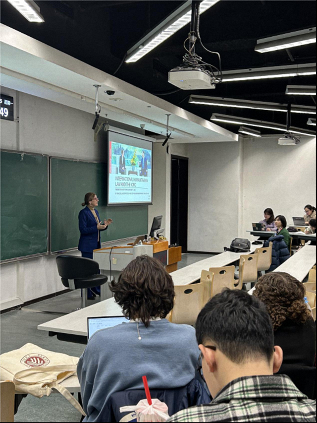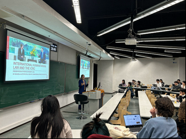 On the evening of November 25, 2024, Ms. Graziella Leite Piccoli (Head of Humanitarian Affairs and Policy for East Asia, International Committee of the Red Cross (ICRC)) delivered a lecture titled “International Humanitarian Law and the International Committee of the Red Cross (ICRC)” to students from the School of International Studies (SIS), the School of Journalism and Communication, the School of Foreign Languages, the Law School, and Yenching Academy, among others.