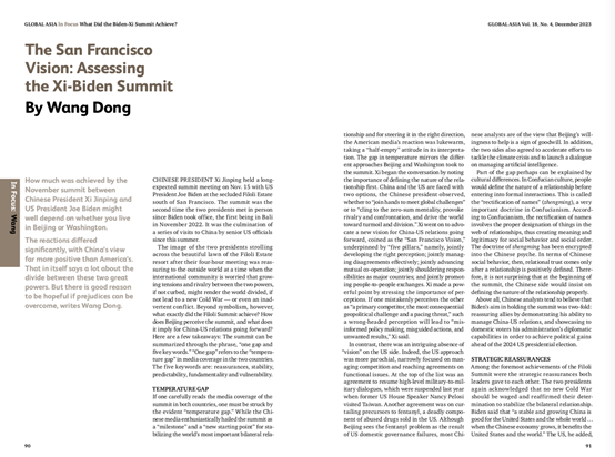 Wang Dong, “The San Francisco Vision: Assessing the Xi-Biden Summit,” Global Asia, Vol. 18, No. 4, December 2023. https://globalasia.org/v18no4/focus/the-san-francisco-vision-assessing-the-xi-biden-summit_wang-dong