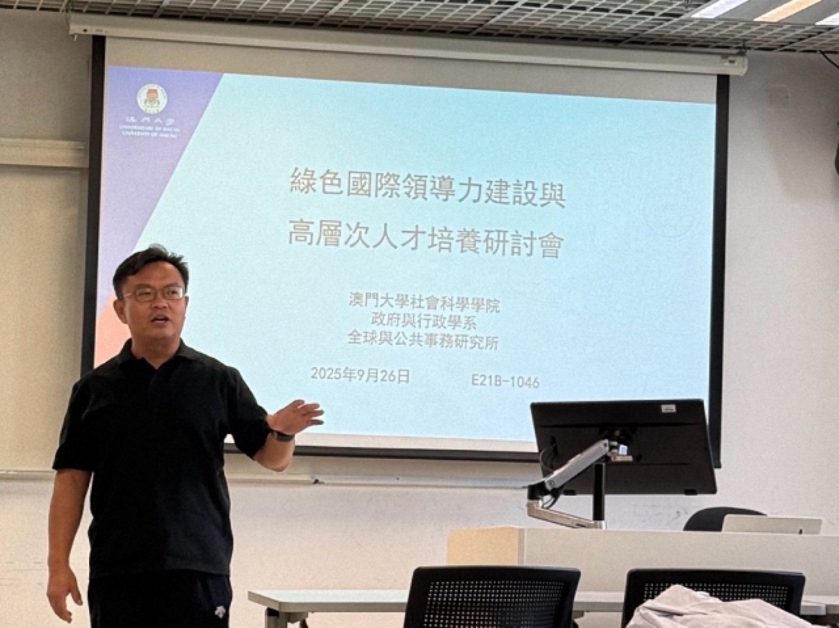 On the morning of September 26, the "Seminar on Building Green International Leadership and Cultivating High-level Talent" was held at the University of Macau’s Faculty of Social Sciences. Professor Pan Wei, Chair of the Institute of Global and Public Affairs at the University of Macau, delivered the opening speech, titled "University of Macau and the 'Small but Beautiful' Macau," where he explored the university's innovative practices in interdisciplinary research and international talent cultivation, drawing from Macau's unique history and cultural role.