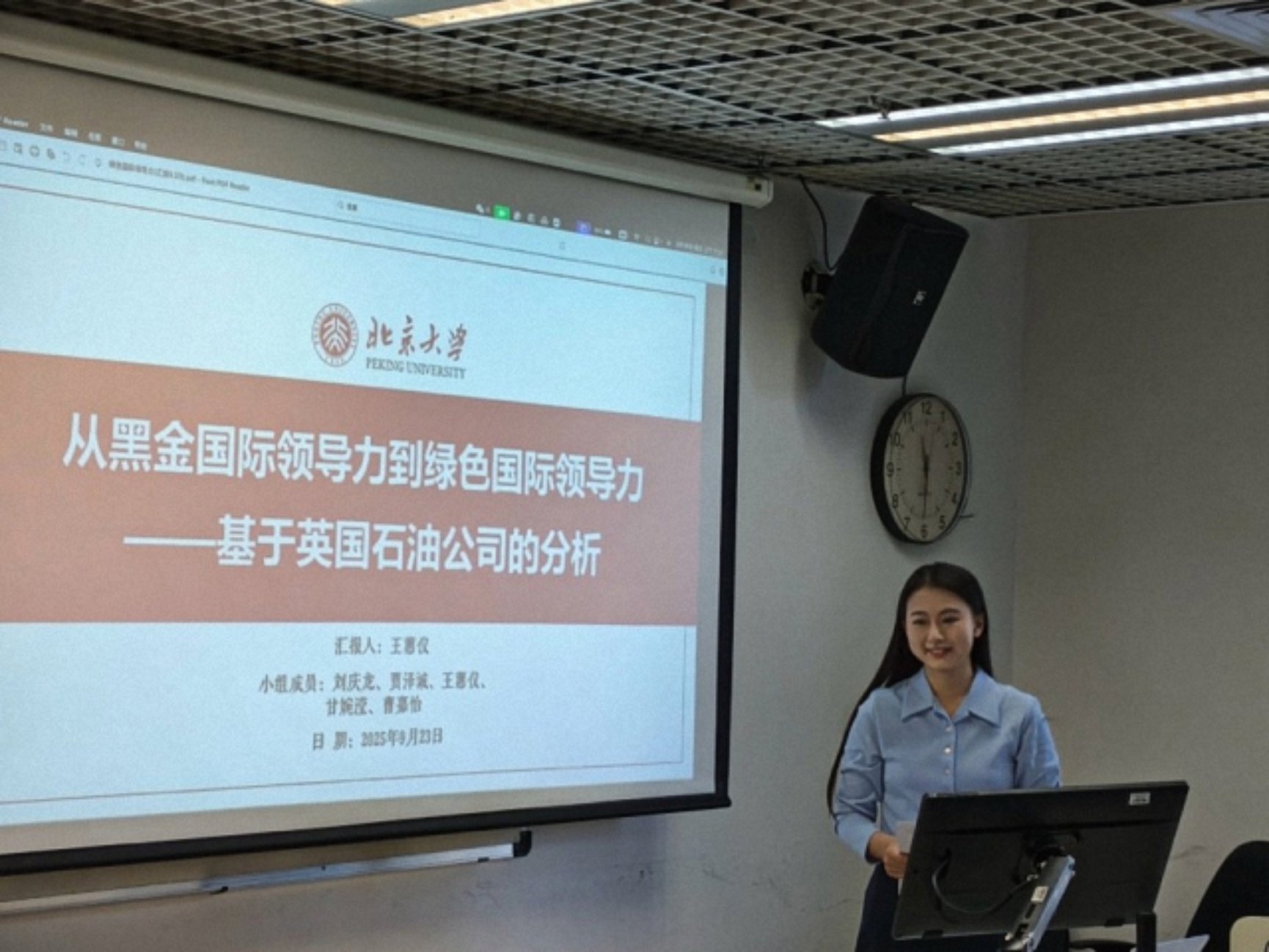 During the specialized seminar session, Peking University’s faculty and students showcased their cutting-edge research. Master's student Xie Meng and PhD student Li Guanru presented on "Artificial Intelligence Empowering Global Governance: Capabilities, Boundaries, and Collaborative Pathways," highlighting the potential of artificial intelligence in transforming social sciences research into a "fifth paradigm," including applications in text analysis, international event recognition, policy modeling, conflict prediction, and geopolitical simulations. PhD student Wang Huiyi analyzed the green energy transition pathway of BP, developing a five-dimensional leadership analysis model that includes resource-driven, cognitive-shaping, experimental-demonstration, network-building, and value-guiding dimensions. This model provided a comprehensive analysis of corporate strengths and weaknesses, and reflected the School’s active exploration of interdisciplinary construction, contributing to theoretical innovation in green international governance.