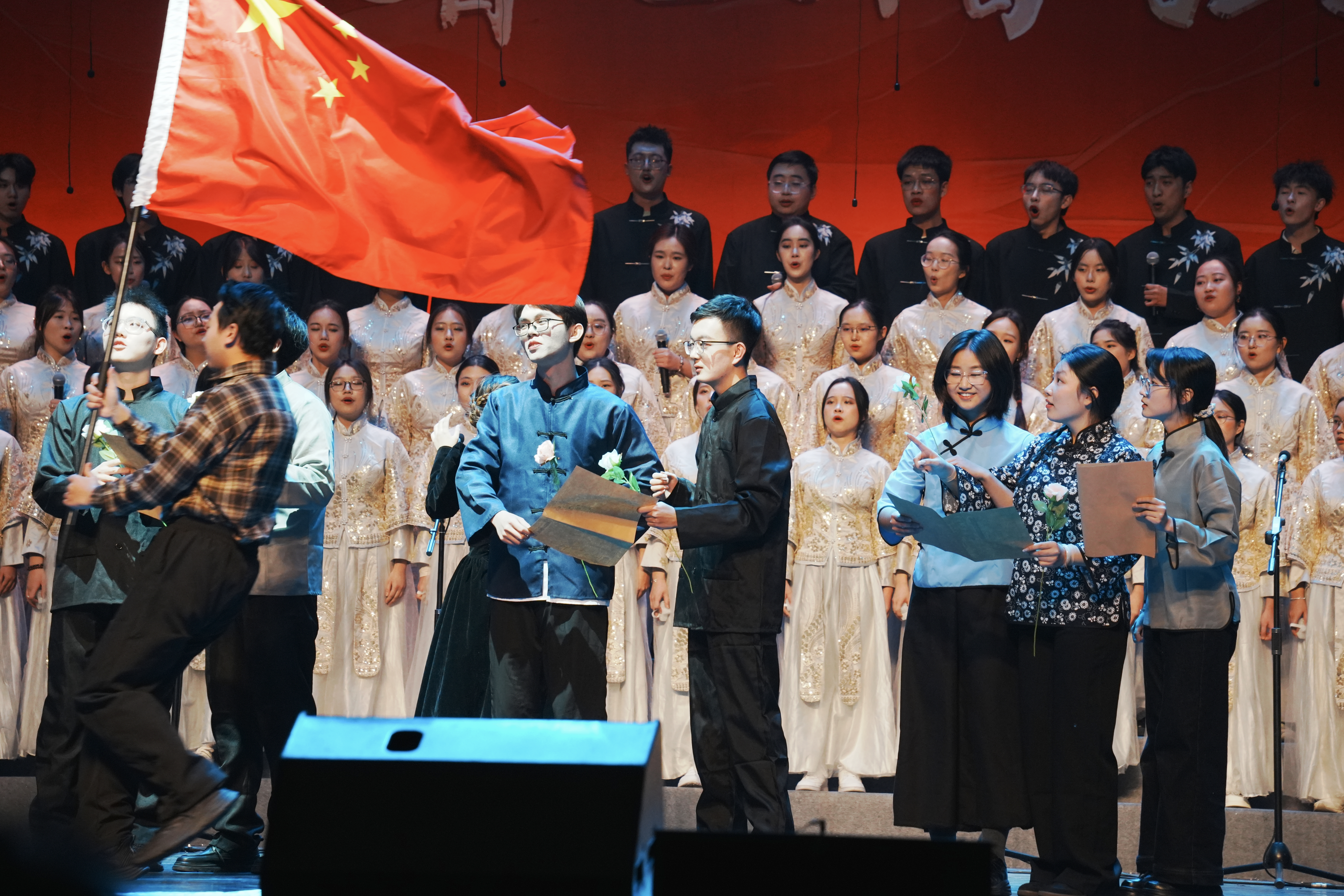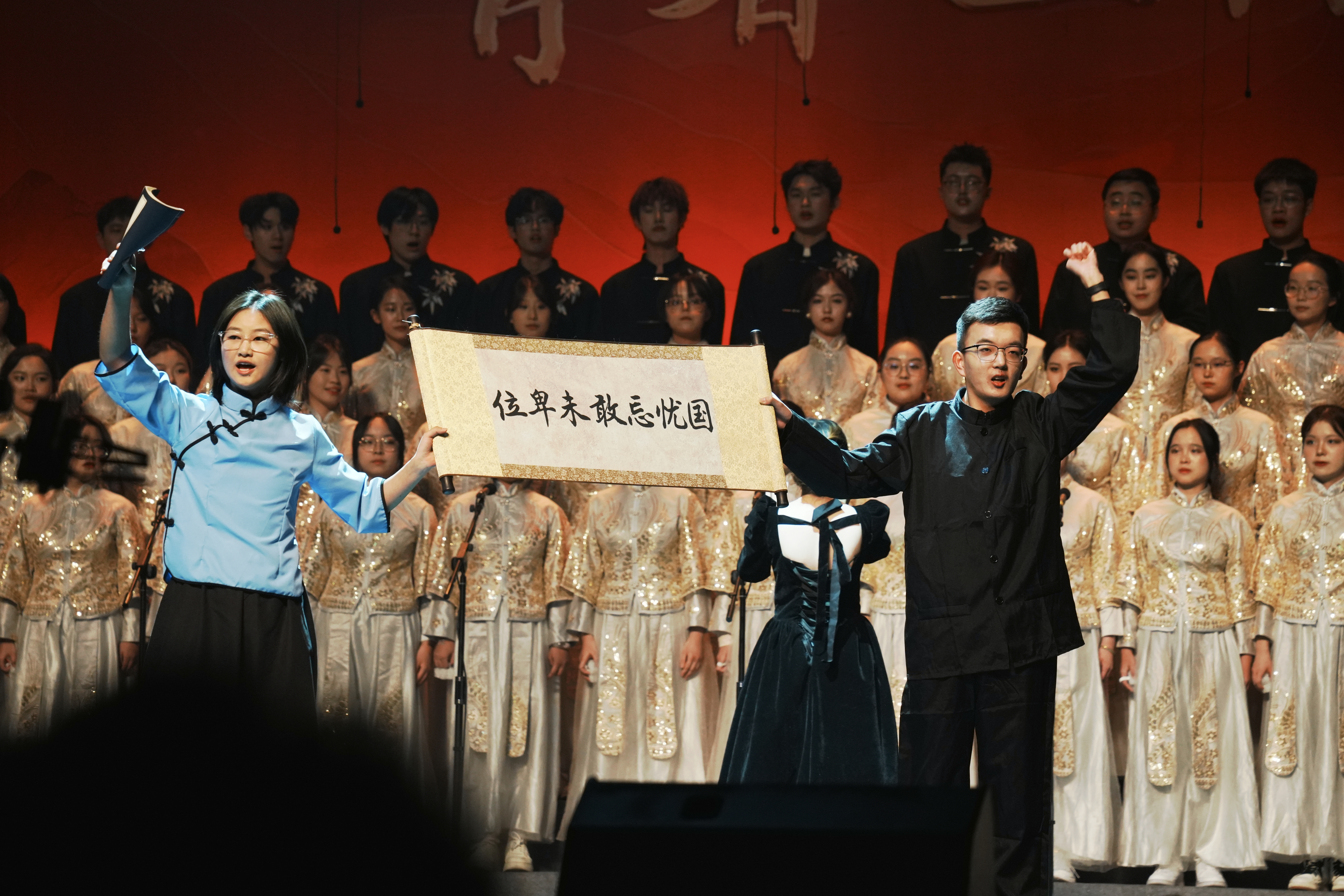 The music swelled and the tempo quickened. The line “holding those years in our hearts” distilled the strength of our generation—carrying forward the legacy of our predecessors to forge new brilliance. Youth from ninety years ago clasped hands with ours in the same beat; hometown and beloved interwove into a mighty current. At depth of feeling, the “beloved” became the land, and the “hometown” took the name China.