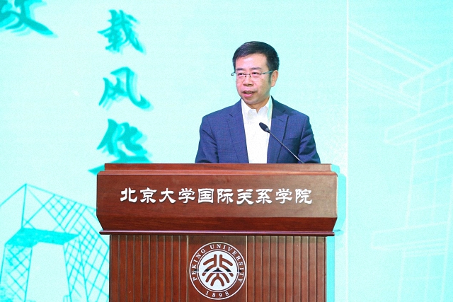 唐士其为开幕式致辞。他对院友及广大师生的到来表示了欢迎。他指出,北京大学国际关系学院学生文化节迄今已经举办了二十届,是学院最有影响力的学生活动之一,文化节既是北大国关学生文化交流和展示,也是北大国关人文化认同的体现。他向北大国关同学提出了三点希望,一是“心系使命,守正创新”,传承六十年国政精神,为国家的繁荣和世界的和平贡献智慧和力量;二是“扎根中国,放眼世界”,以家国情怀为底色,拥抱全球性的机遇,迎接全球性的挑战;三是“努力奋斗,笃志躬行”,以增强文化自信为基,拓宽国际视野为魂,在笃志好学中追求新知识,在躬行实践中验证技能。在当前合作与冲突、机遇与挑战并存的时代背景下,他期望国关青年能够共同努力,塑造多元包容的学生文化,通过文明交流互鉴,搭建世界各国相知相亲的桥梁,编织国与国之间合作共赢、共同发展的纽带,为世界和平进步,为国家和社会发展,贡献自己的青春力量。