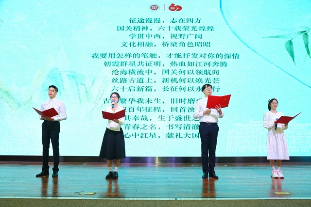 在开幕式上,青年学生代表朗诵了国关学子创作的《国关颂》,回应了何为真正的国关人的问题,展现了国关学子传承国政精神、谱写青春华章的风采。