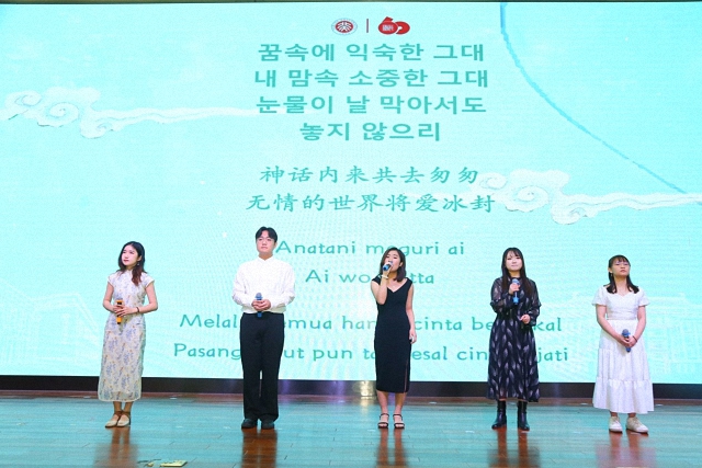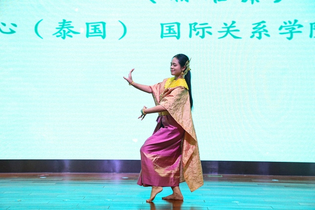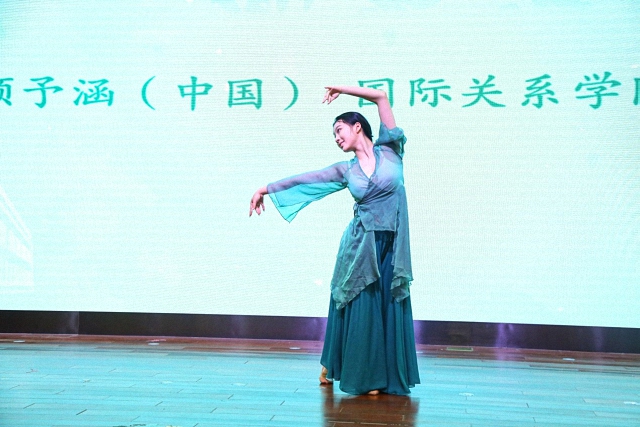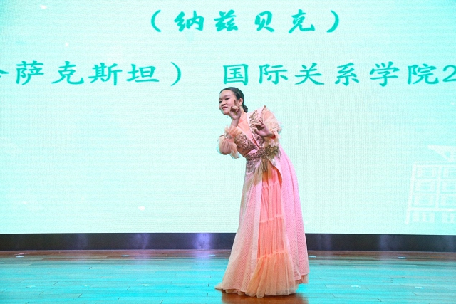随后,来自不同国家和地区的学生代表用多国语言联唱了歌曲《美丽的神话》,悠扬的歌声既洋溢着青春的热情,也体现出多国语言的魅力。除了歌曲,还有来自不同国家的同学献上的精彩的舞蹈表演。有刚柔并济、优雅曼妙的中国舞,庄严美丽、手势独特的泰国标准舞,充满活力、轻快活泼的哈萨克斯坦舞蹈“纳兹贝克”,还有简单有趣、欢乐十足的老挝巴斯洛普节奏舞蹈。台下的观众既感受到不同国家文化的多姿多彩,也能一窥国关学院文化多元、和谐与共的风貌。