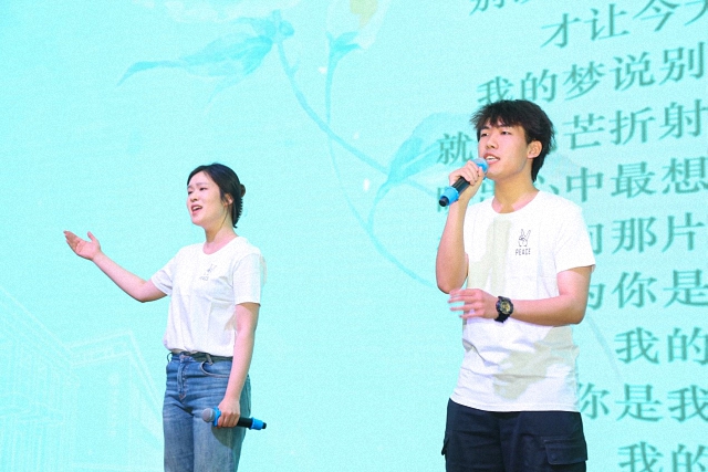 在回顾国关人的成长历程后,多位学生代表用歌声表达心中的热爱和梦想。历年“一二·九”歌曲联唱唤醒大家的记忆。当熟悉的旋律响起,伴随着台上同学们动人的歌声,许多同学在台下轻声合唱,重温排练与表演的美好时光,唱出国关人使命在肩、心怀家国的精神。最后,一首《我的梦》以优美的词曲,回答了在变化的世界中,如何追逐梦想的问题。观众们齐声合唱,共同创造开幕式上精彩的瞬间。