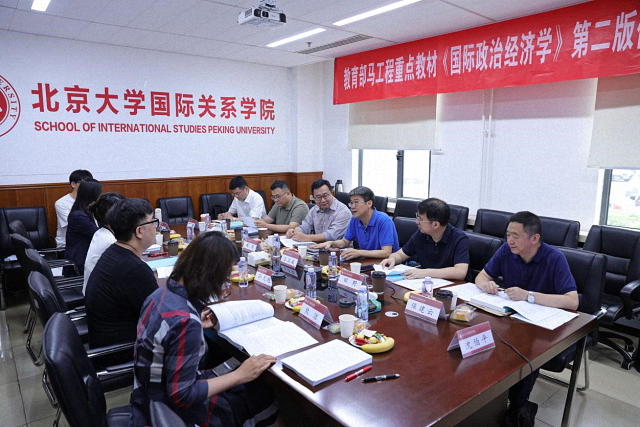 2024年7月2日,教育部马工程重点教材《国际政治经济学》第二版修订研讨会在北京大学国际关系学院顺利召开。研讨会由教育部哲学社会科学研究重大课题攻关项目首席专家、北京大学国际关系学院教授王正毅主持,参加会议的教材编写组成员包括:中国人民大学国际关系学院教授田野、保建云,外交学院国际关系研究所所长曲博,南京大学马克思主义学院教授沈伯平,北京外国语大学国际关系学院副院长杨毅,中国社科院亚太与全球战略研究院大国关系研究室主任钟飞腾,中央党校国际战略研究院全球治理与国际组织研究所副所长熊洁,北京大学国际关系学院副院长董昭华。此外,国家高等教育教材综合研究基地办公室主任胡卫红,高等教育出版社文科事业部副主任王溪桥、高级编辑孙天旭共同出席会议。