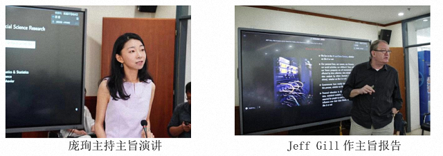 开幕式后,论坛进入学术主旨报告环节,由北京大学国际关系学院教授、北京大学全球风险政治分析实验室主任庞珣担任主持。本次论坛的主旨演讲嘉宾为政治学方法研究领域标志性期刊《Political Analysis》主编、政治学方法国际学会会士和前主席、美利坚大学杰出教授Jeff Gill教授。Gill教授在报告中回顾了社会科学领域在过去几十年中经历的三次“范式”冲击,分析了算法、大数据以及人工智能的原理和应用如何对社会科学研究者学术思维和研究方式产生深刻改变。他指出,当前人工智能对社会科学学术既有规范带来了挑战,社会科学将在应对这些挑战中发生范式性变化。