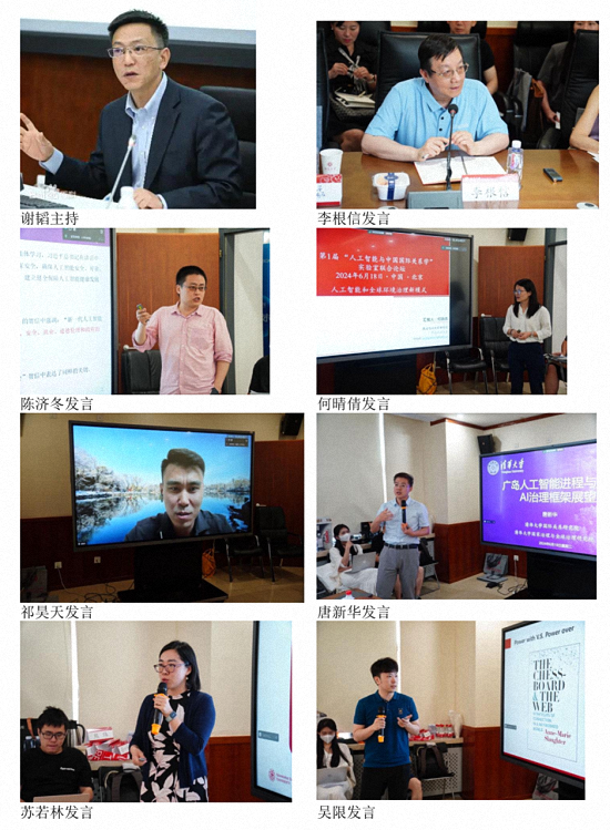 主旨演讲环节结束后,论坛进入题为“人工智能国际关系新议题”的主题学术研讨,北京外国语大学国际关系学院院长谢韬教授担任主持人,共七位发言嘉宾针对这一主题进行了多角度深入讨论。外交学院特聘教授、联合国全面禁核试条约组织原司长李根信结合外交实务工作需要,探讨了人工智能在国际关系研究中的应用,尤其是在提升全球治理外交谈判方面的潜力。他期待北大、清华和外交学院等实验室在这一方向上紧密合作,通过充分利用AI技术为全球性挑战和多边合作提供智力支撑。清华大学公共管理学院长聘副教授陈济冬以中国在人工智能赋能社会治理领域中的积极探索为例,介绍了其研究团队的实地调研成果,探讨了人工智能在提升和扩展治理能力方面的中国经验及其为全球治理提供的新思路和新方向。