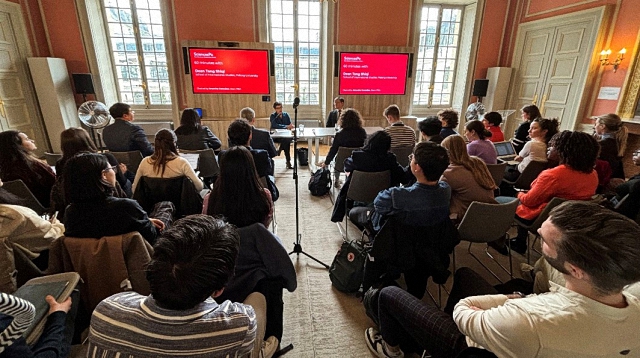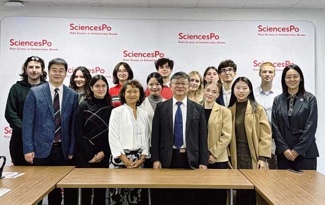 在代表团访问巴黎政治大学期间,还与现就读于巴政的2024级北大-巴政双硕士项目的学生进行座谈。代表团与同学们分享和交流了项目课程要求、语言课学习、实习机会以及来华准备等方面的信息。