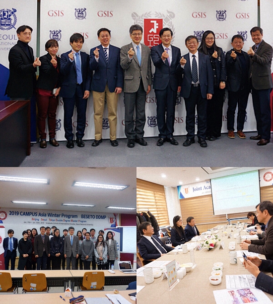 我院与首尔国立大学国际关系学院在亚洲校园项目框架下合作密切。截止到2018年秋季学期,两院的师生交流达150余次。2019年1月28日,院长唐士其教授、党委副书记范士明副教授、副院长董昭华副教授和亚洲校园项目行政负责人陈芳赴首尔国立大学国际关系学院参加亚洲校园项目行政联席会议,双方就建设亚洲校园项目核心课程、联合培养双硕士、互派师生交流等问题进行了讨论。